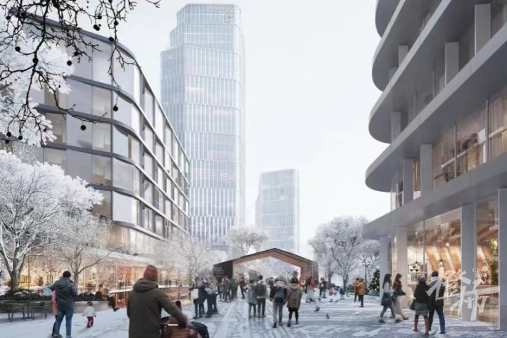 这个北至体育场路,南至百井坊巷的商业项目由多幢高楼组成,几幢大楼形成了一个错落有致的视觉梯度,将成为市中心的一大新地标。