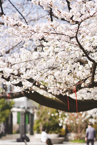大家急着赏樱拍樱花,还因为“一朵樱花只开七天”这个说法。确实,樱花虽然美,但美得很短暂,一朵樱花从开放到凋谢只有一周左右,而整棵樱树从开花到全部凋谢,也不过就20天的样子。当然,樱花也有不同品种,根据开放的时间,分为早樱、中樱和晚樱。杭州市园林文物局工作人员说,樱花是蔷薇科樱属植物的统称,起源于中国,有40余种,距今已有2000多年的栽培历史。日本樱花则有10余种,但在其精心培育下,品种得以不断增加,从而成为一个丰富的樱家族。