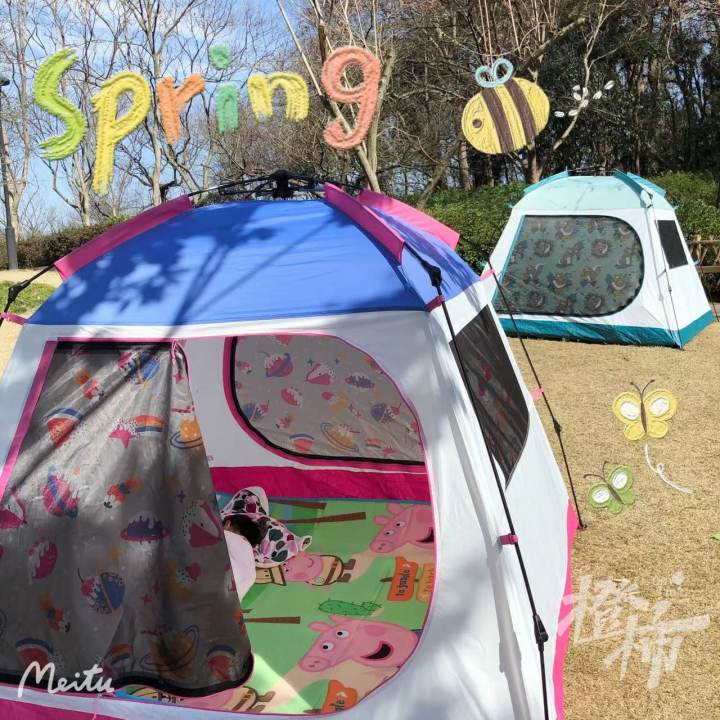 橙友“猫猫大爆炸”全家总动员,把帐篷搭在了城北体育公园的草坪上。