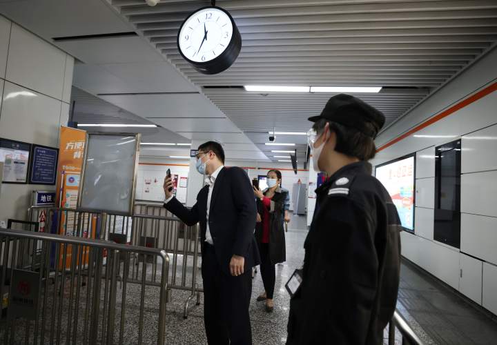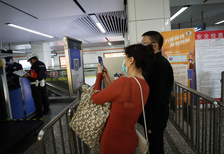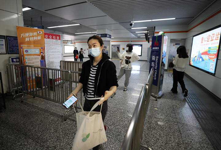 浙江新闻客户端讯 3月16日,杭州地铁2号线中河北路站,市民扫场所码并亮码入站乘车。近日,杭州地铁严格落实防疫措施,乘客坐地铁必须扫场所码以及亮码配合查验。