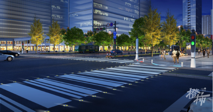 智慧大道建设,包括安装智慧斑马线、智慧公交站、智慧灯杆等。