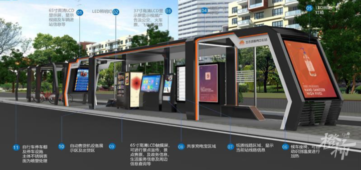 智慧大道建设,包括安装智慧斑马线、智慧公交站、智慧灯杆等。