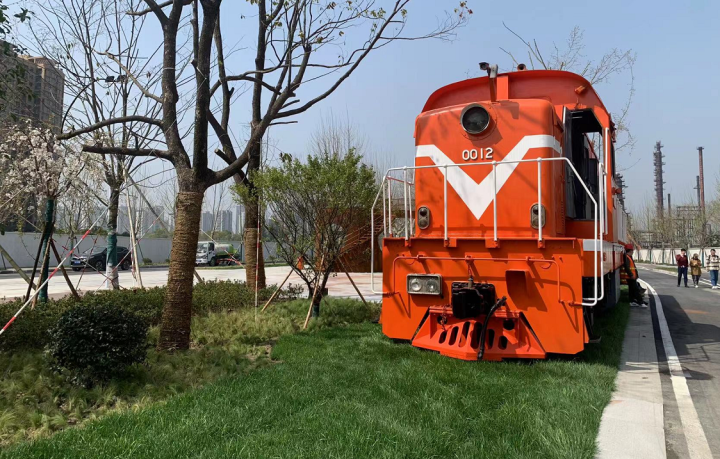 除了绝美的梧桐大道,这条景观大道北侧还铺设了轨道,顾扬路以西位置,停放着一辆老式火车头。张中勇介绍,以后待条件成熟,市民游客可以坐着小火车游览这条景观大道。