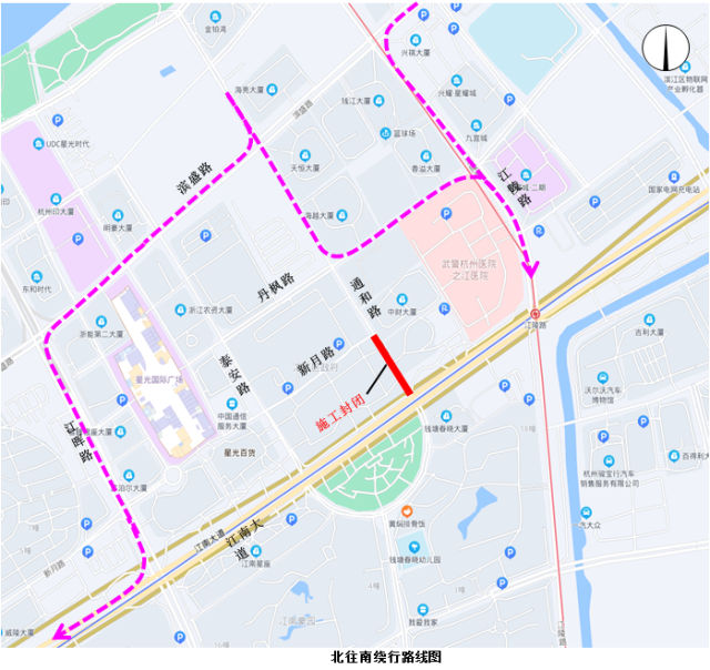 第一阶段3月28日-4月11日,通和路(新月路-江南大道)全封闭施工,施工期间预留东侧便道,便于中化大厦进出通行,受影响车辆请选择江晖路、江陵路等周边道路绕行。