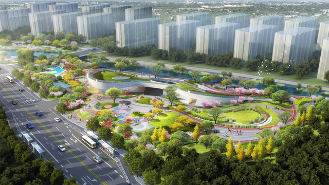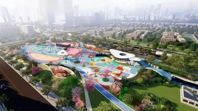 基本情况:年轮公园位于开发区,北临北沙西路、西临风荷路、东临河道禾丰港、南临星光街,是禾丰港提升工程的重要景观节点。公园集合半场篮球、活力乒乓、器械健身、有氧体操等项目,形成多样化的趣味运动空间。