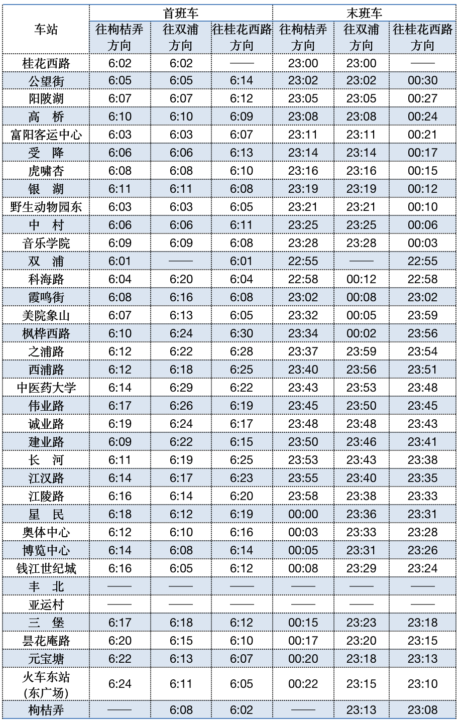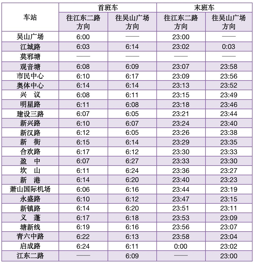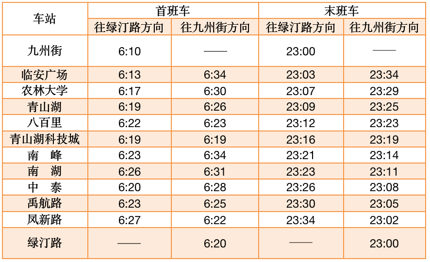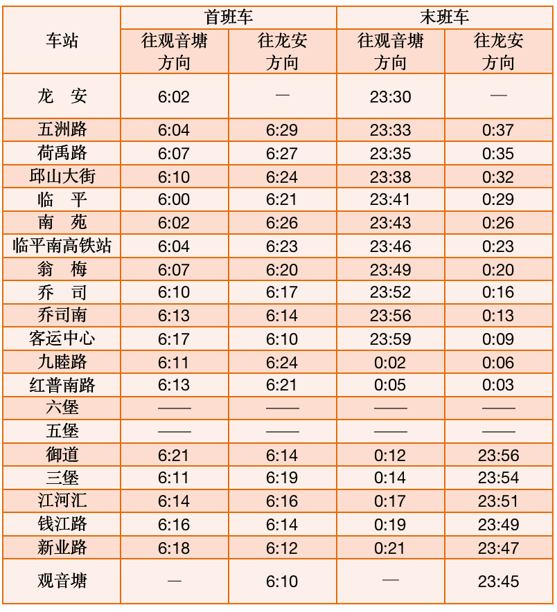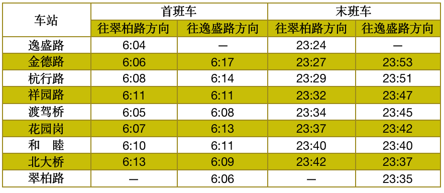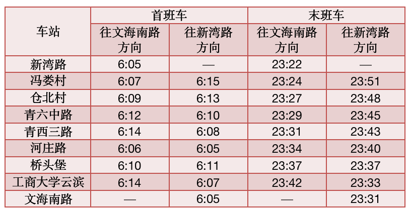 首末班车时间