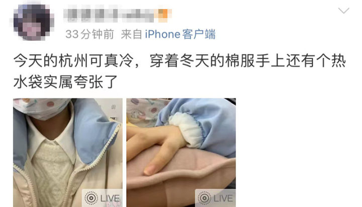 都市快报报道 一场冷空气经过,杭州人又凌乱了,本以为可以告别冬装,今天却又有不少人翻出了棉袄,甚至热水袋: