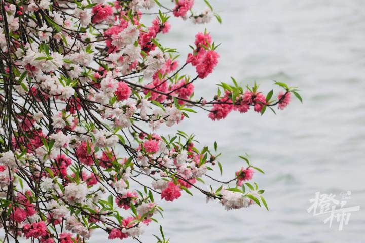 西湖边的桃花,一棵树上两种颜色,橙柿互动记者 夏阳摄