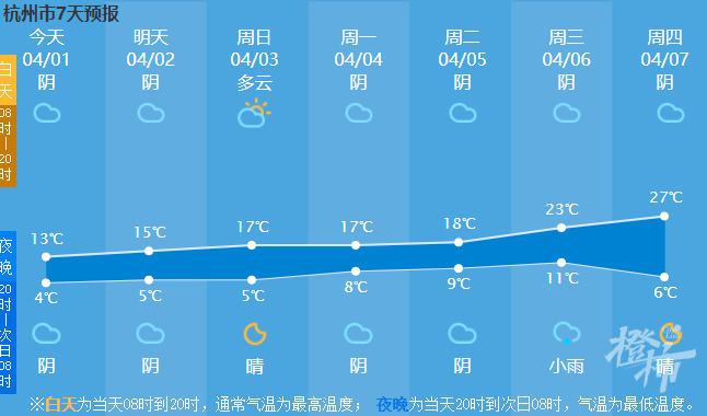 杭州明天开始太阳回归,白天阳光几乎一直在线,清明小长假期间(4月3-5日)为晴到多云的好天气。
