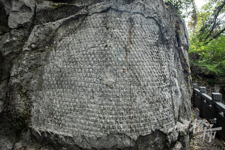 这里最有名的是石龙洞口西南向的一块巨岩上,密布排列整齐、壮观的千佛造像,所以石龙洞又称千佛龛。