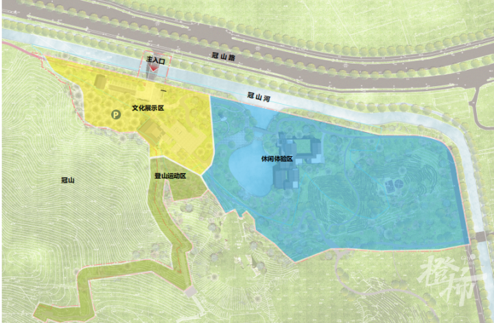 公园分文化展示区、休闲体验区和登山运动区三个区块。