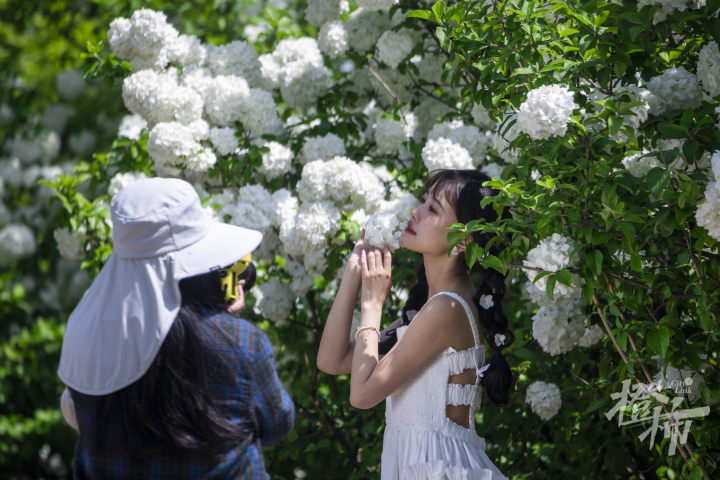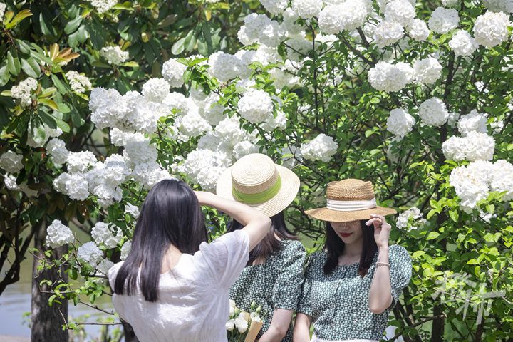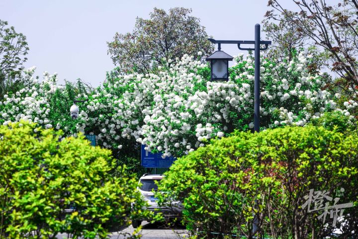 都市快报讯 杭州湘湖眉山路这里,木绣球盛开了。