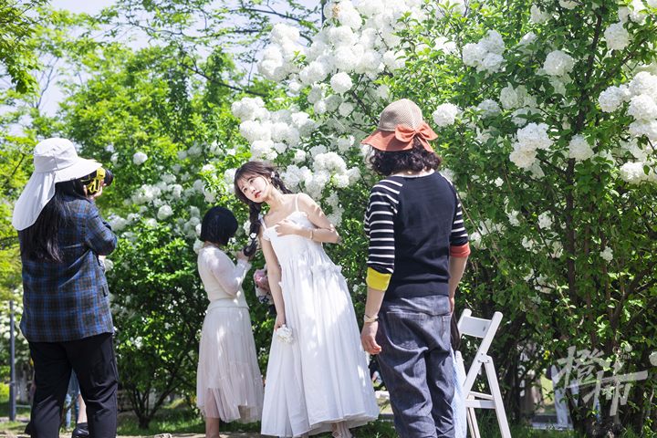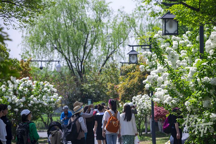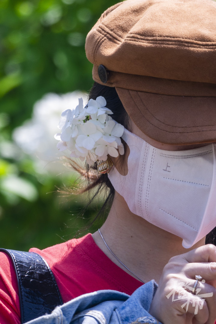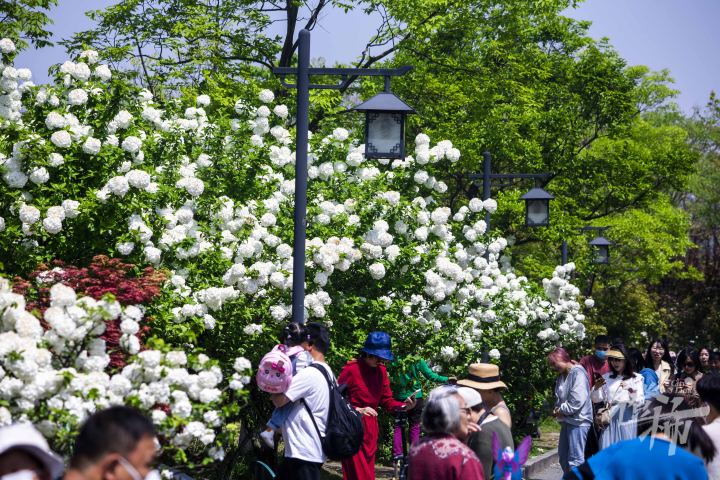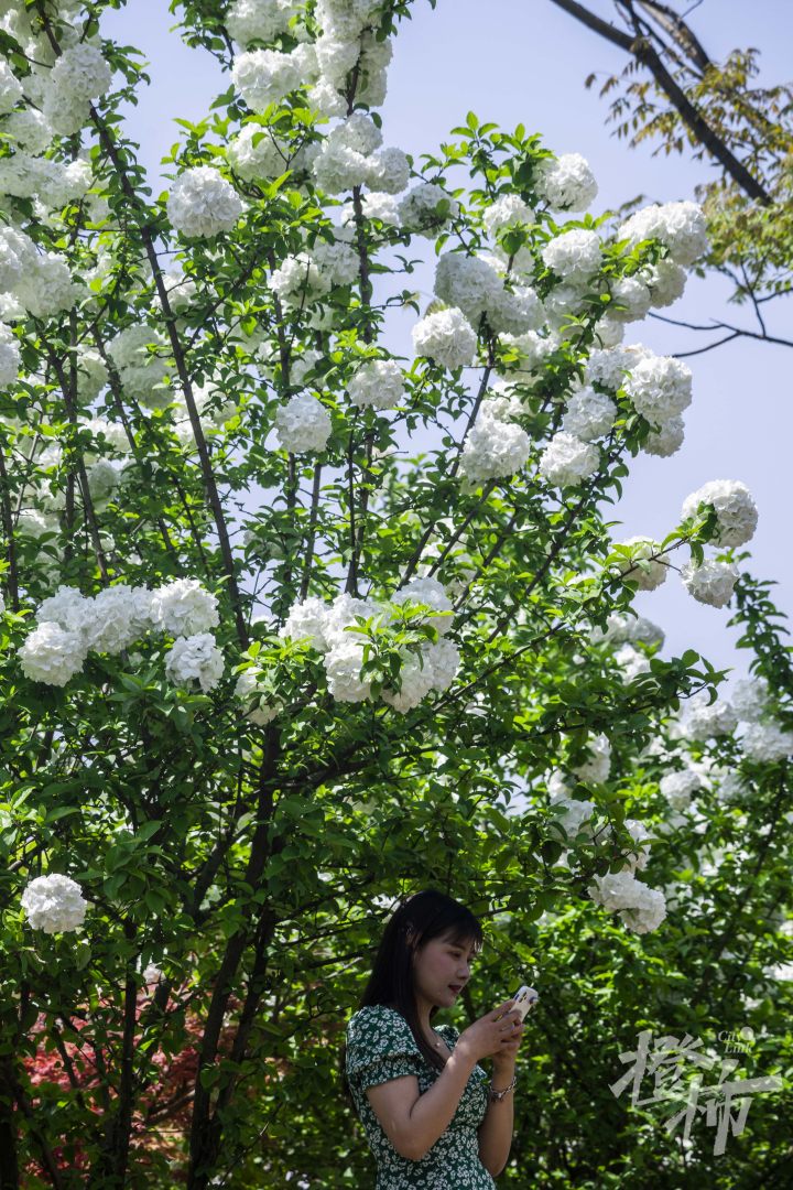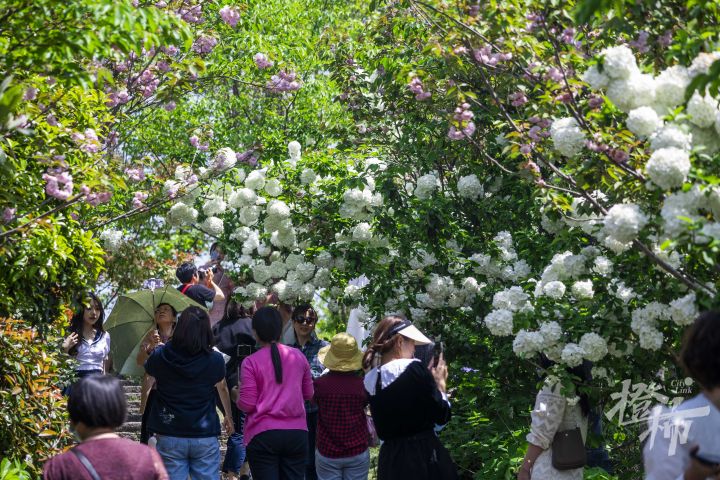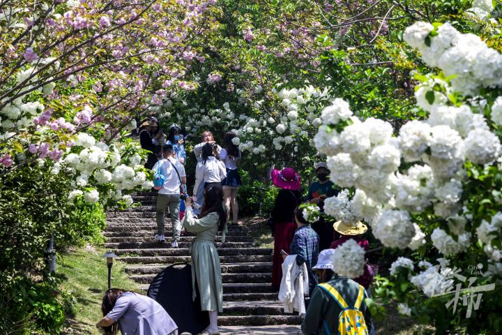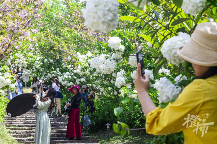 今天是清明小长假后的第一个工作日,但在木绣球林中,不少市民游客前来打卡。
