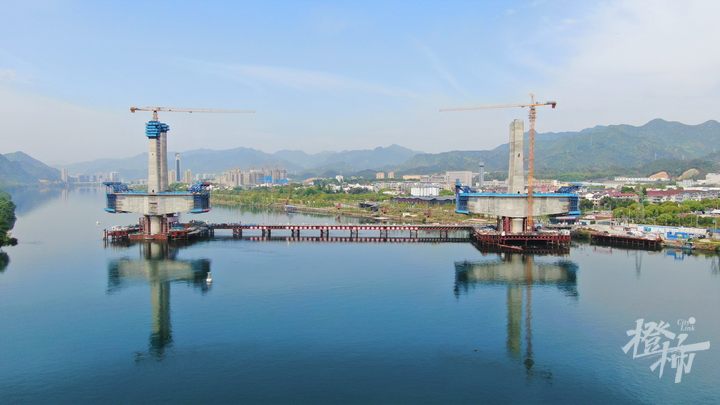 杭衢高铁新安江特大桥位于建德市境内,跨新安江,是一座矮塔斜拉桥,有两座主塔,18号主塔封顶后,意味着大桥的双主塔全部完成封顶,预计今年11月可实现大桥合龙,建成后将是新安江上的又一道建筑景观。