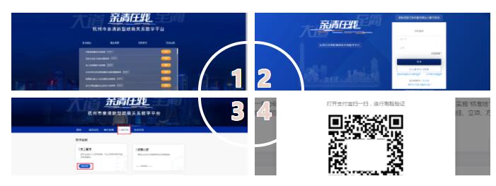 单位代理人访问亲清在线平台:https://qinqing.hangzhou.gov.cn,选择“登录—行政许可—员工管理”,打开支付宝扫脸实名认证。如下图所示: