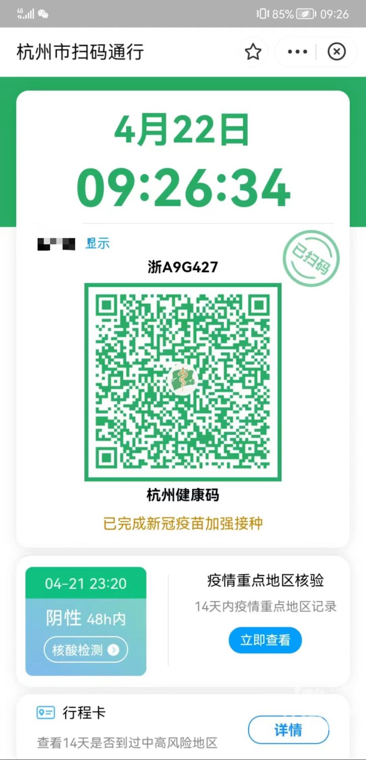 据杭州市疫情防控指挥部相关负责人介绍,从今天(4月22日)开始,杭州“健康码”扫码核验显示界面实现“四码一屏”显示。新的显示界面保留原有的健康码、疫苗接种信息,同时增加了“核酸检测”信息和“疫情重点地区核验”信息。