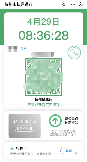 按照杭州市常态化核酸检测工作要求,自4月30日开始,如果没有每48小时完成一次核酸采样,就不能进入地铁等公共区域。