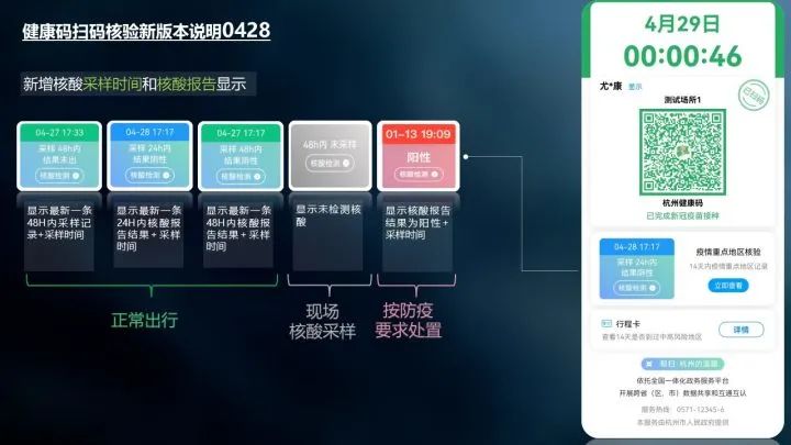 杭州城市大脑技术与服务有限公司(简称数字杭州)运营和品牌负责人王洁介绍,为了让大家明天出行不受影响,杭州健康码维护团队连夜对杭州健康码“四码一屏”显示功能进行了升级。