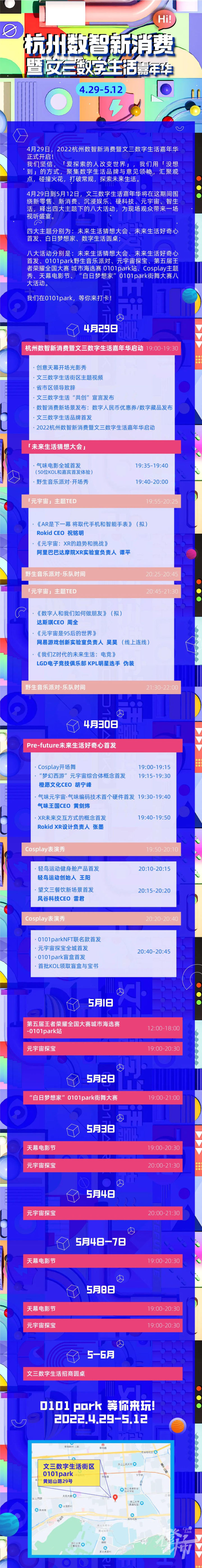 五一期间,文三街数字生活街上将举办2022杭州数智新消费暨文三数字生活嘉年华,感兴趣的小伙伴不妨去抢鲜体现一把数字生活。