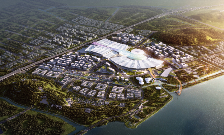 以馆带城、城馆联动。杭州大会展中心,是杭州会展新城首个标志性、引领性重大项目,未来它将是一个集展览展会、会议中心、星级酒店的综合体,项目总占地面积约1110亩,总建筑面积约134万平方米,地上面积约84万平方米,室内净展面积约30万平方米。
