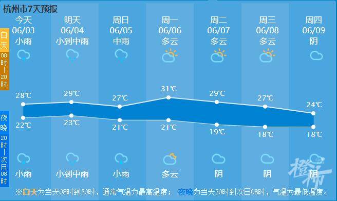 假期三天杭州都要被雨水光顾,其中今天早晨多云到阴,白天阴转阵雨局部雷雨,今天夜里到明天白天多云到阴有阵雨或雷雨,明天夜里阴有中阵雨或雷雨;后天白天阴有中到大阵雨或雷雨,傍晚前后起雨止转阴到多云。