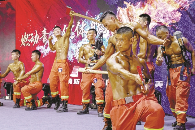 杭州日报讯 因为那身火焰蓝的制服,消防员现在被不少人亲切地称为“蓝朋友”。不过,昨天的杭州消防救援支队训练馆里,一群年轻的“蓝朋友”却是古铜色的——杭州消防救援支队举办了“燃动青春健体魄,精兵护航二十大”的第四届健美比赛,78名优秀消防员秀出肌肉,展示平时刻苦训练的成果。