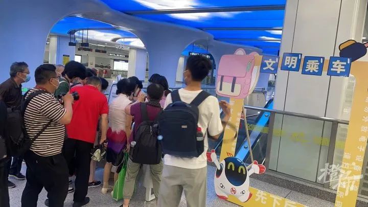 有位大伯进站开始就一直在拍视频,大伯说,每天要从小和山来黄龙洞早锻炼,以前都是公交车晃荡1小时,今天打算坐地铁回去,看看需要多久。