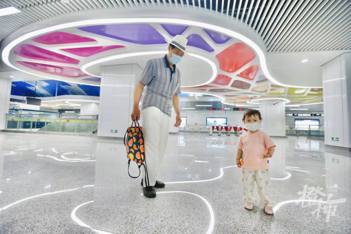 这位老爷爷和孙女嘟嘟住在未来科技城板块的翡翠城,今天,爷孙俩要去大运河玩,坐上3号线,快捷、稳当。