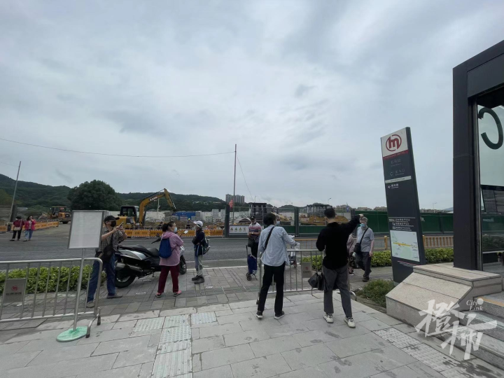 石马站C口出来就是之江高中,门口的道路还在恢复中。可是由于没有公交指引牌,不少老年人出站后不知道该往哪里走,都在询问公交站点。