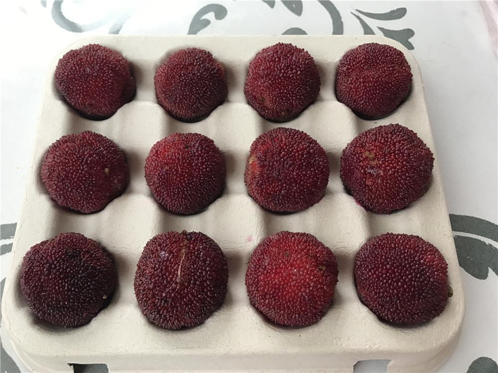 她告诉记者,她家的杨梅今天还是第一次采摘,而且由于今年杨梅减产了40%,又刚上市,产量很小,现在供不应求,都是打精美包装,散的基本不会卖:“我们现在杨梅刚上市,都抢着收购的,顶级的收购价今天在40元一斤以上,个头小一点的都在25元(一斤)以上,没有20元(一斤)以下的杨梅,因为现在是刚开始摘,没有小的。”