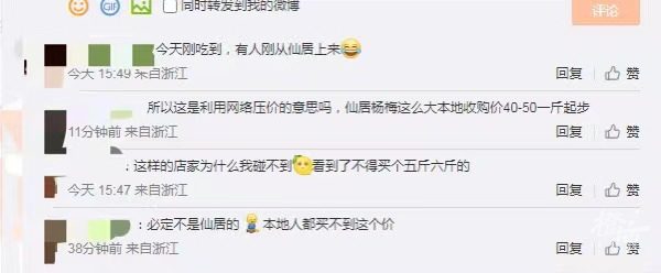 但有网友看到留言跟我们说,这个价格不可能是仙居的东魁杨梅,本地收购价都在40元-50元。