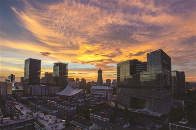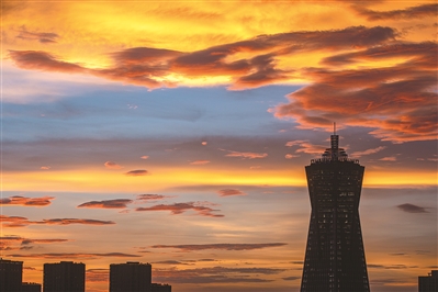 昨天傍晚,杭城上空晚霞绚烂。