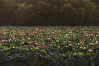 到北宋,荷花已经在西湖周边广泛分布,有苏轼的“菰蒲无边水茫茫,荷花夜开风露香”,柳永的 “有三秋桂子,十里荷花”为证。
