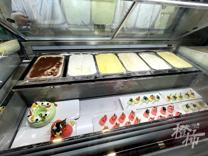 店内也卖现制蛋筒冰淇淋,原味、香子兰味和提拉米苏味,前两者39元/60g,后者59元/60g。冰淇淋甜点同样是3种口味,原味和香草味32元/份,提拉米苏味38元/份。在售的还有两款6寸冰淇淋蛋糕,香草味和提拉米苏味,售价分别为278元/个和378元/个,也可单块购买,售价分别为36元、49元。