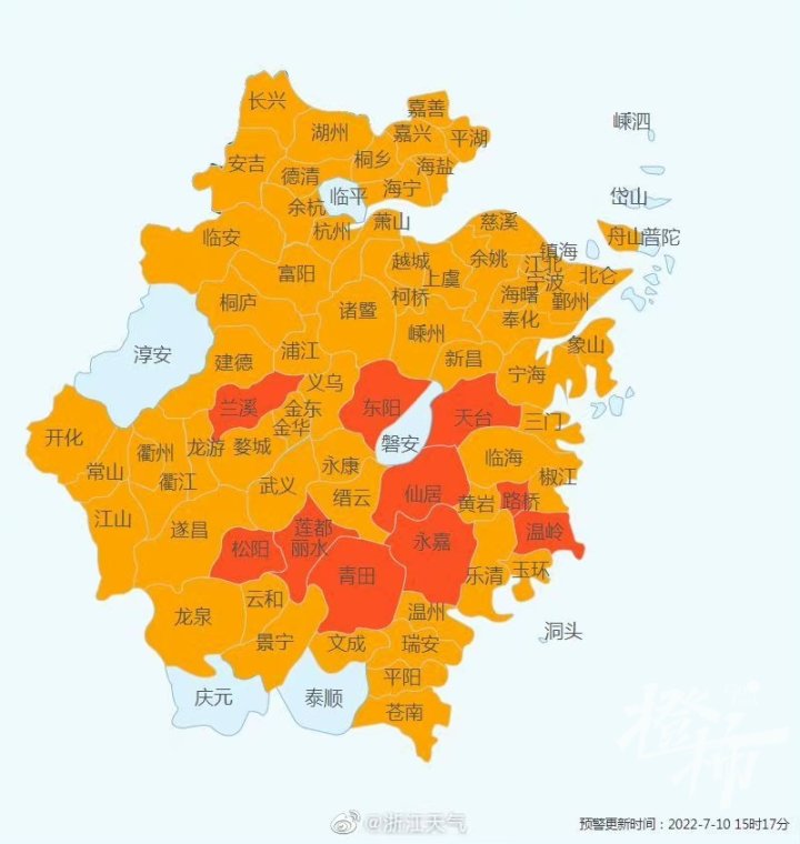 截至15时17分,今天我省各地共发布高温红色预警10条,已打破7月上旬历史同期高温红色预警日发布量记录。