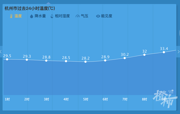 这轮高温来势汹汹,简直不给人一点喘息的机会,哪怕早晚都感觉不到凉爽。从杭州天气网公布的温度曲线图看,今天凌晨5时还有28.2℃,早上7时又重新回到了30℃。也就是说,晚上还没有凉下来,早上又重新热了起来,真正的从早热到晚。