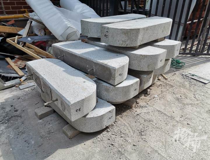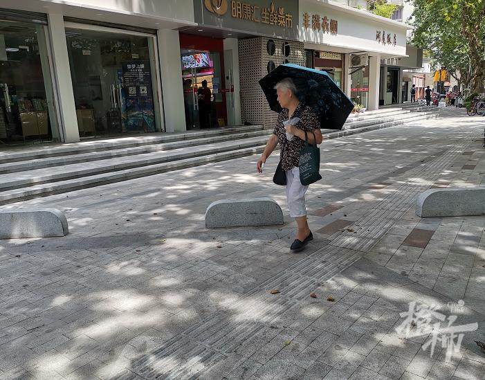 小张说:“这个石墩子,我们叫石墩墩,是6月底安装上去的。我们年轻人走走没事,这附近都是老年人,他们视力不好尤其是晚上,会看不见。”小张还强调:“现在这个石墩颜色跟地面相近,到了晚上连我们也容易绊倒。”