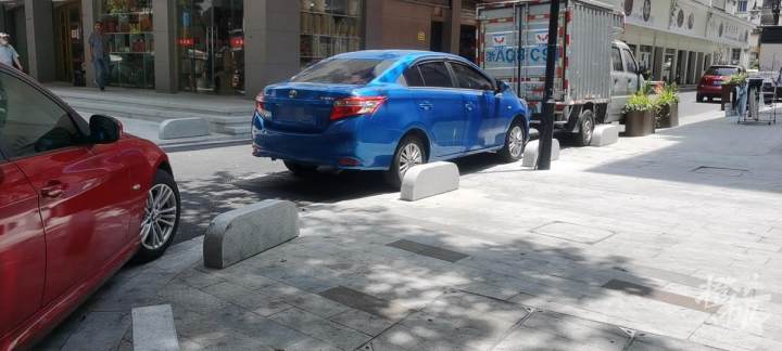 应先生在青年路未改造之前也来过,给他的感觉是小车乱停放,改造后的确整洁,有序很多。应先生说:“这种石墎墎颜色跟地面接近,肯定是有问题,杭州还有很多类似的石墩墩,怎么做的人性化,还是有待思考。”