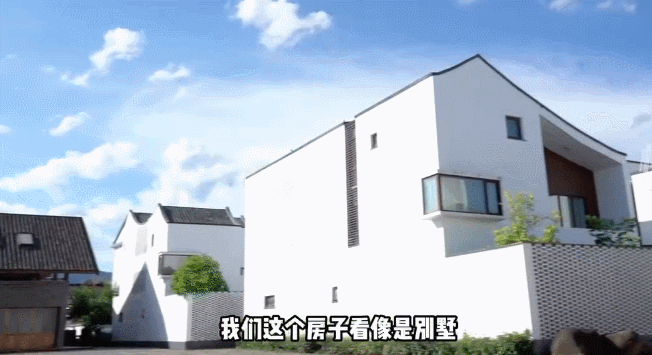 “游客来都说是别墅,但其实是村里的回迁房,我们请设计师设计的,还原了吴冠中笔下的《水墨江南》画,大家都说很羡慕我们住在水墨画里面……”