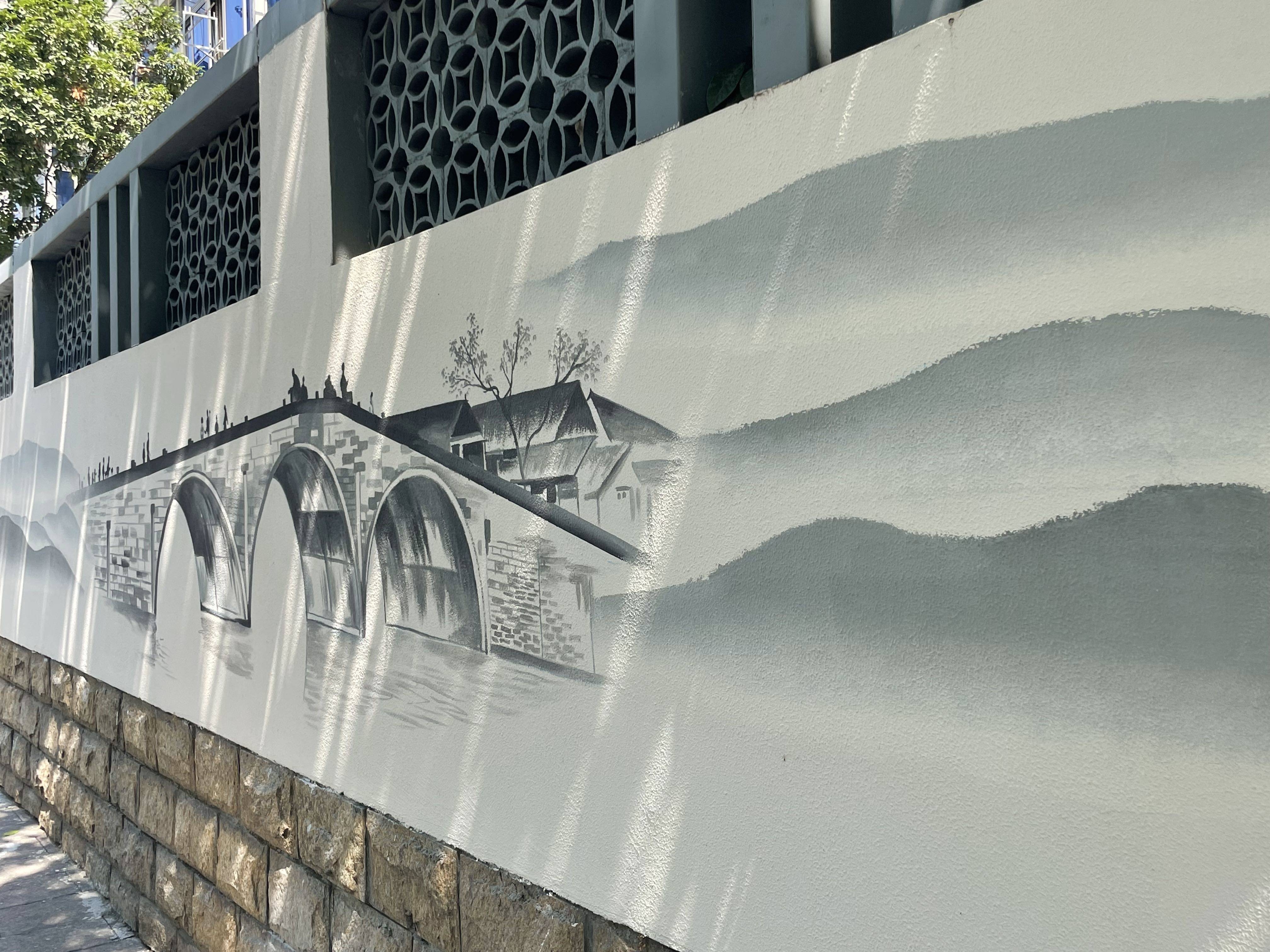 路过的市民夏女士直言,"感觉这个墙绘让人眼前一亮,设计得很巧妙,浓浓的水墨画很抓眼球,所以忍不住就拍了一段。"