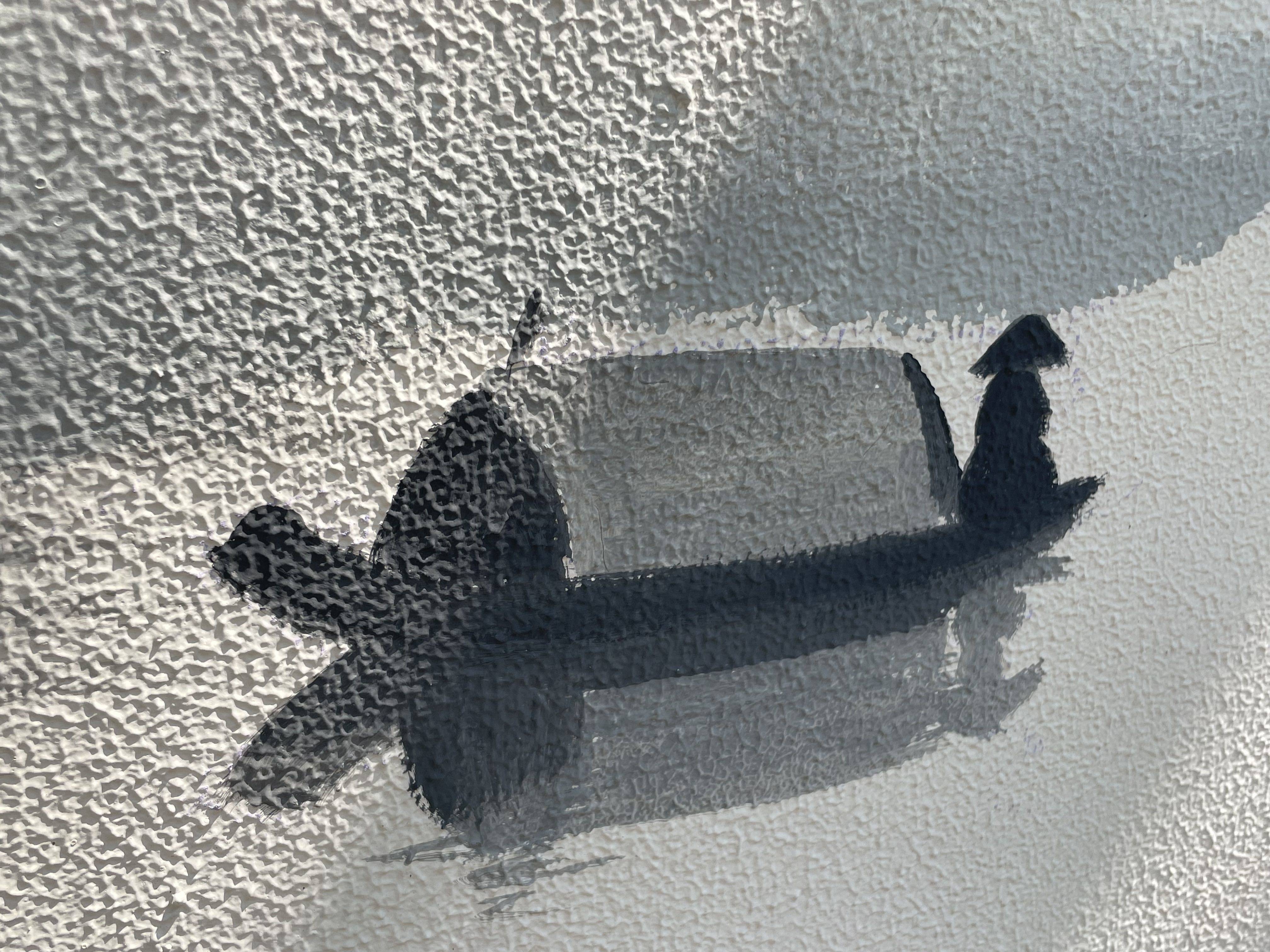 正在创作的绘画师邵志明说:"宣纸上画画更柔和一点,墙上可能做的雾化效果没有那么好。我主要用这种滚筒,多次滚动,做出渐变的效果。"
