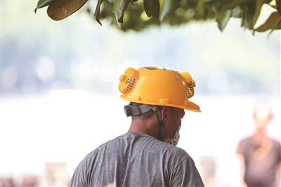 戴着太阳能风扇帽游西湖