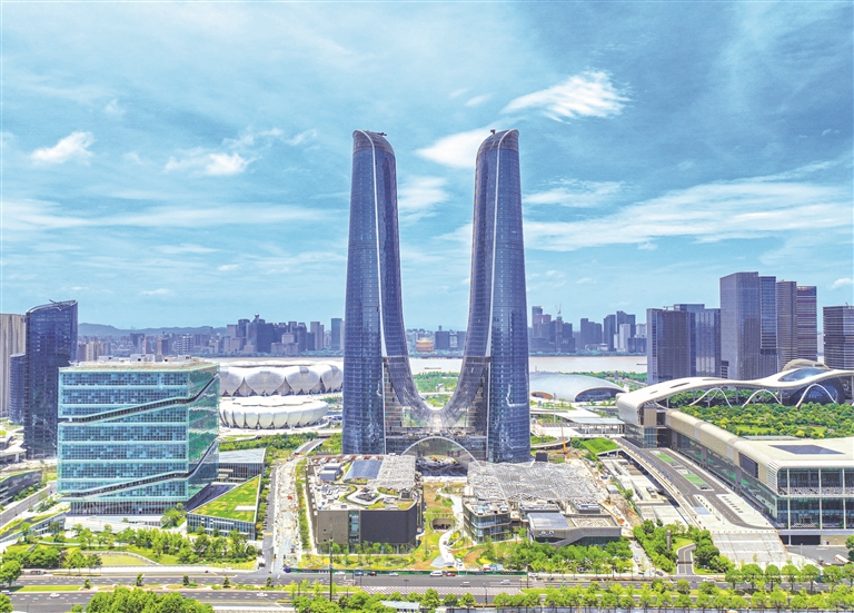 23日上午,当玻璃装配工张师傅把最后一块玻璃安装到窗框上时,意味着历时一年多的杭州世纪中心幕墙玻璃安装已全部结束,高达302.6米“双子星”从此披上了漂亮的外衣。目前,2座大楼的建设已基本完成,接下来主要是大楼内部的设备安装和调试,以及外围配套的景观和绿化布置。