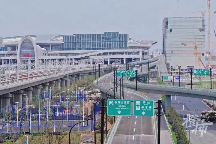 我们从杭州市中心开车出发,先向北行驶到城北一带的留石快速路上,再一路向西行驶,过了经过改建的三墩互通,就进入了即将开通的留祥路西延段。留祥路西延段连着西站进出匝道,可以直接到达西站站房的西进站口。