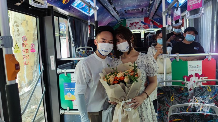 第一对上车的情侣收到了爱的惊喜
