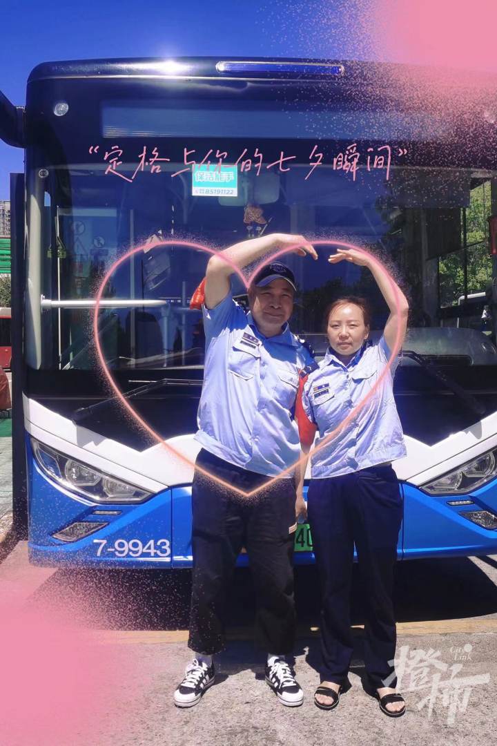 许多杭州公交的员工,都是“双职工”,杭州公交汽六分公司的余云青和管江敏特意在七夕节拍了一张合照,余云青说:“只要心中有爱,每一天都是七夕节。”