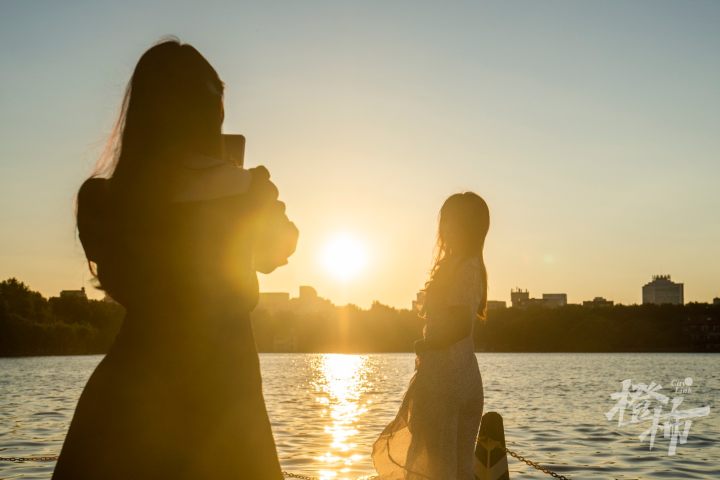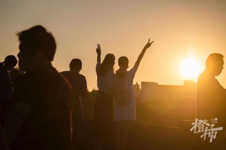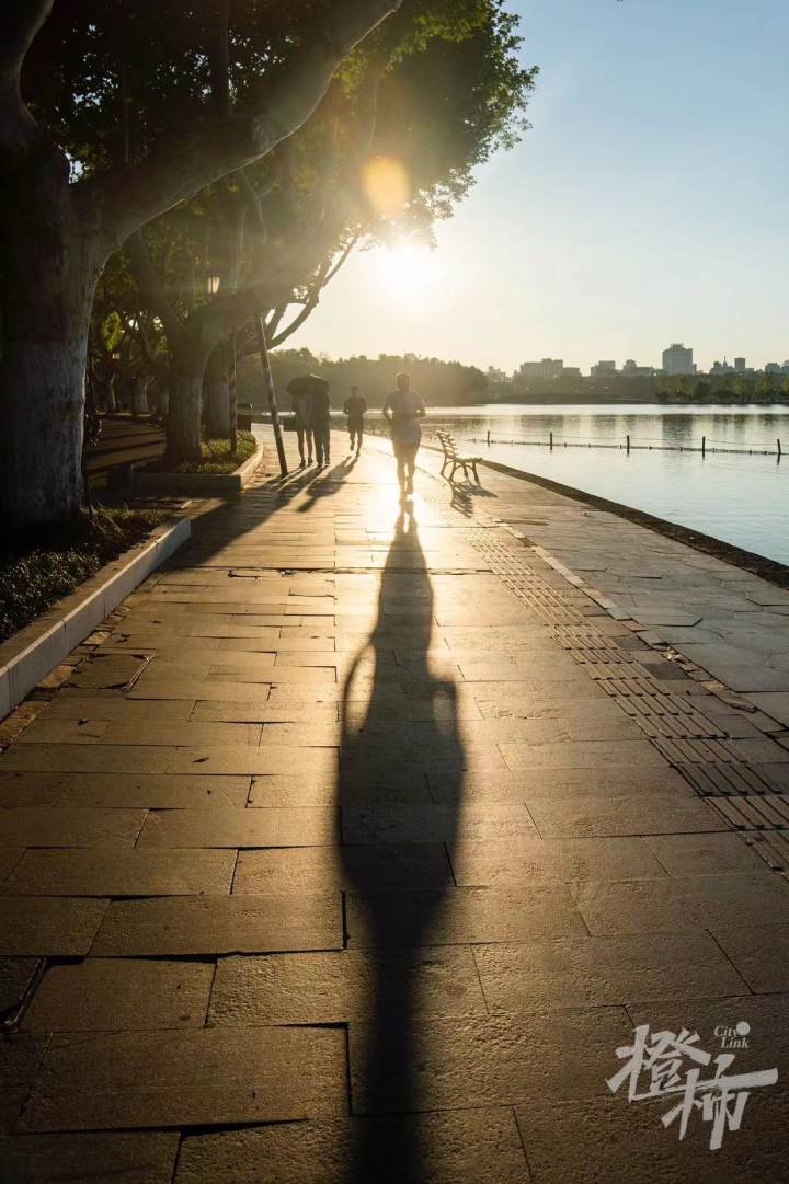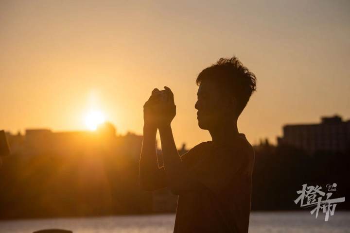 西湖边看日出的市民,记者 夏阳摄