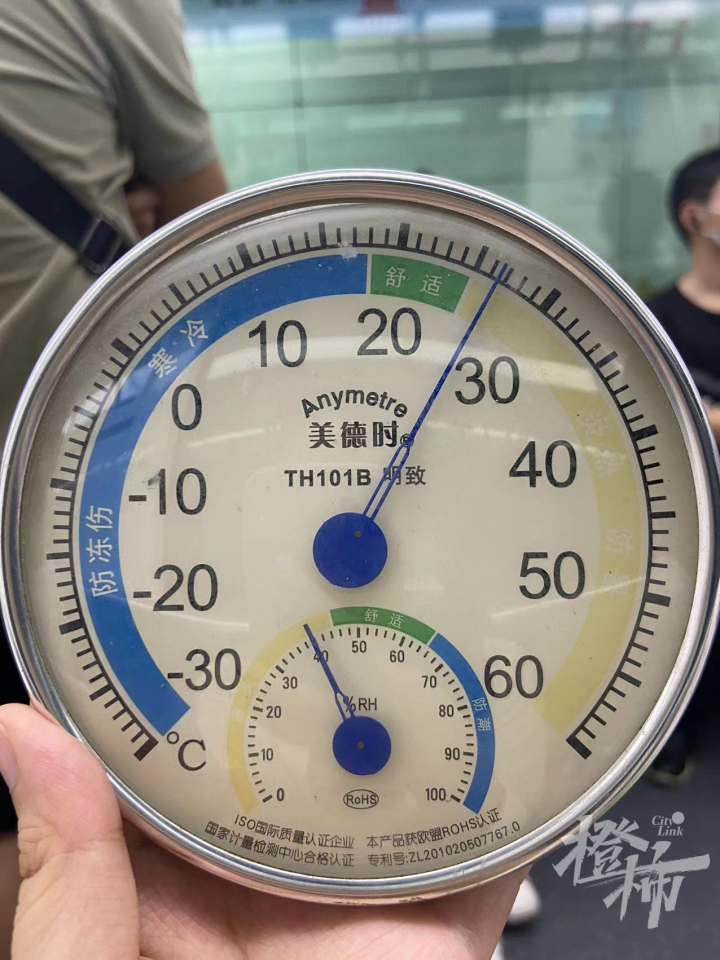 “哪里冷?早高峰在杭州地铁1号线上就是蒸桑拿!地铁上有温湿度计,上面28℃的气温和70%的相对湿度,按照酷热指数换算,体感已经超过30℃了”;