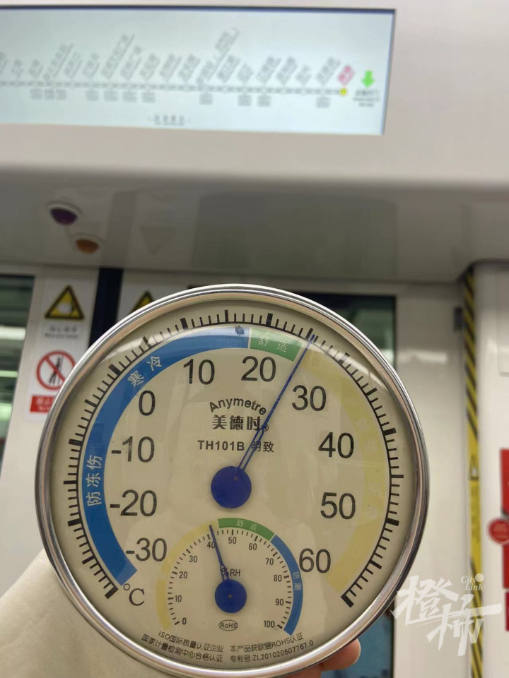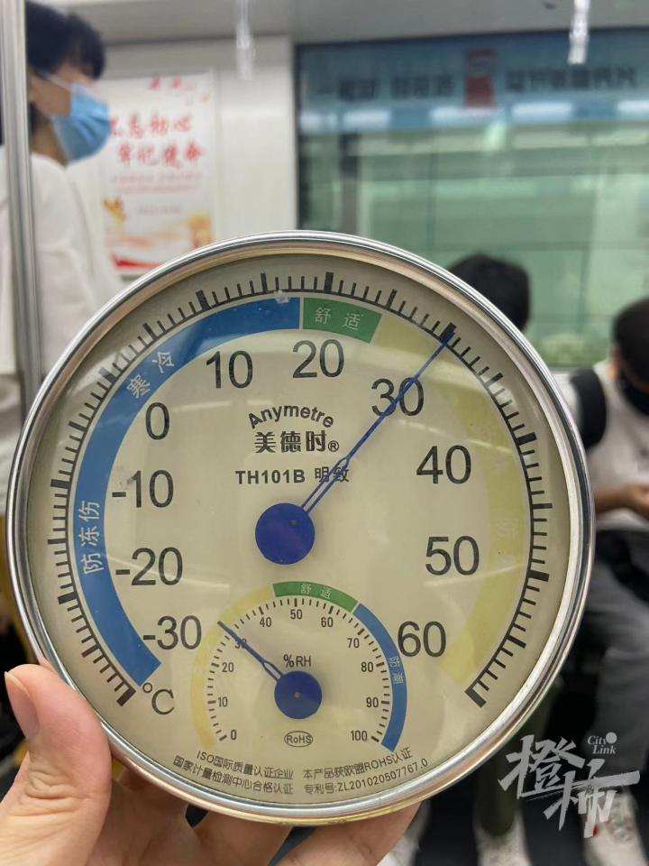 橙柿互动记者许晖: 刚走到地铁站,进站后都还是比较热的。坐了几站后逐渐觉得凉爽,但不冷。等到吹了半小时空调,到了最后一站,感觉有点冷。