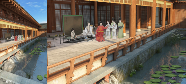 受限于场地条件,至今未能就德寿宫的北苑进行考古。为弥补这一遗憾,数字化复原展陈团队采用三维复原技术,对北苑“小西湖”进行动态演绎。